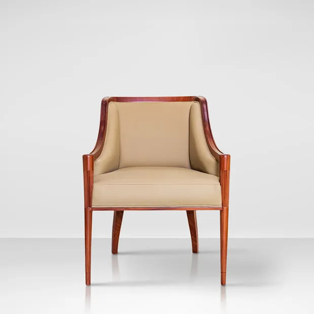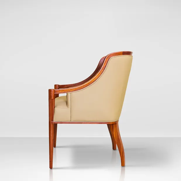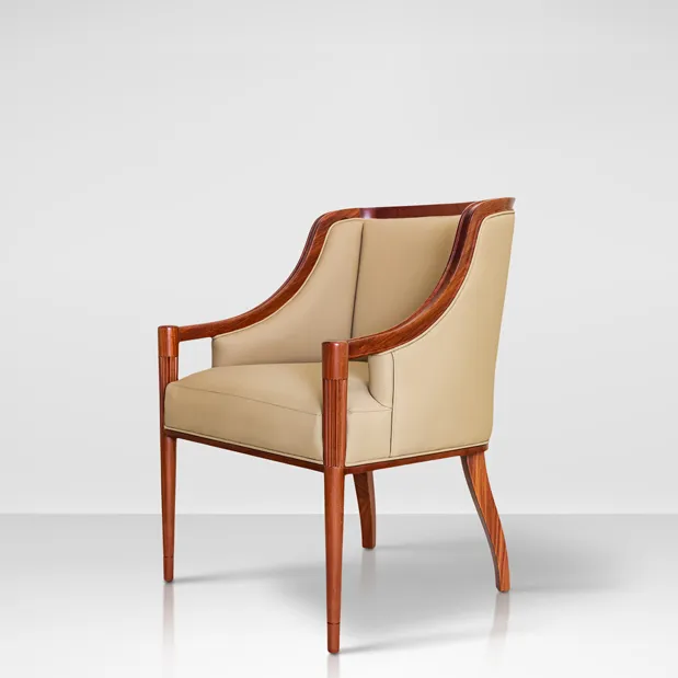 الكرسي الأرستقراطي المصنوع من خشب الماهوجني الغني يكمل تمامًا المقاعد الرسمية.