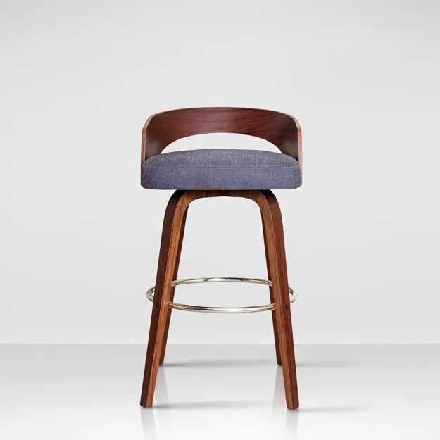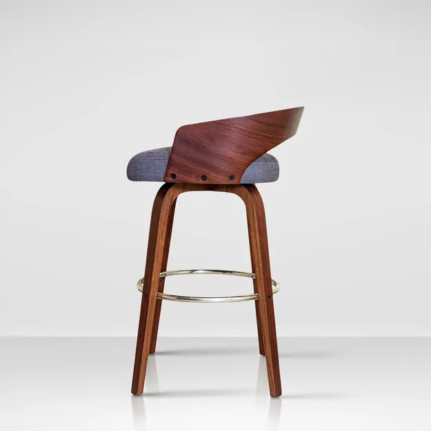 كرسي بار حديث من خشب الزان مع مسند ظهر منخفض ومسند قدم .