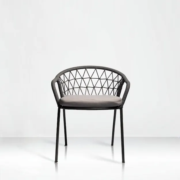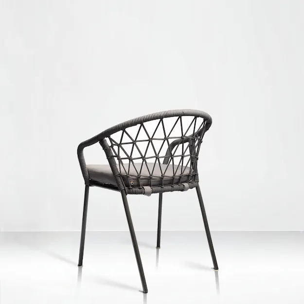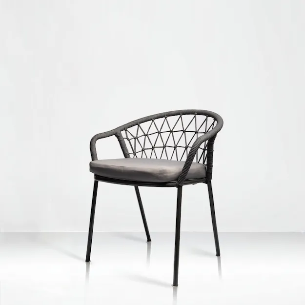Elevate your dining experience with the exquisite Playa, a beautifully crafted metal chair. Designed with meticulous attention to detail, the "Playa Seat" features a stunning rope backrest and seat. This dining chair is best when used outdoors on its own or can be grouped with a set. It is a lovely piece for people who are looking for elevated dining experience. Our Playa dining chair can come with different finishes upon your request, you can also choose from a variety of fabric choices.