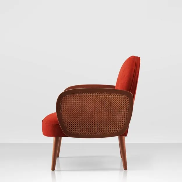 Download Mood Board Download 3D ModelNature, relaxed vibes, and durability: that is what the Natura Wood armchair is all about. The Natura wood armchair is a lovely piece for people who lean more towards a nature vibe in their living area. This armchair comes with an elegant and comfortable design and a hint of simplicity that makes it the unique piece it is. The Natura wood armchair comes with a sleek design that gives a premium look and feel with high durability and a comfortable cushioned seat and back support. The Natura wood armchair features a wooden armrest made of beechwood and covered with a cane pattern. This armchair is inspired by nature, giving you the comfort of a regular armchair with a nature vibe for a unique style. Our wood armchair comes in different finishes upon your request. You can also choose from a variety of fabric choices. You can even replace the cane and have upholstery instead.